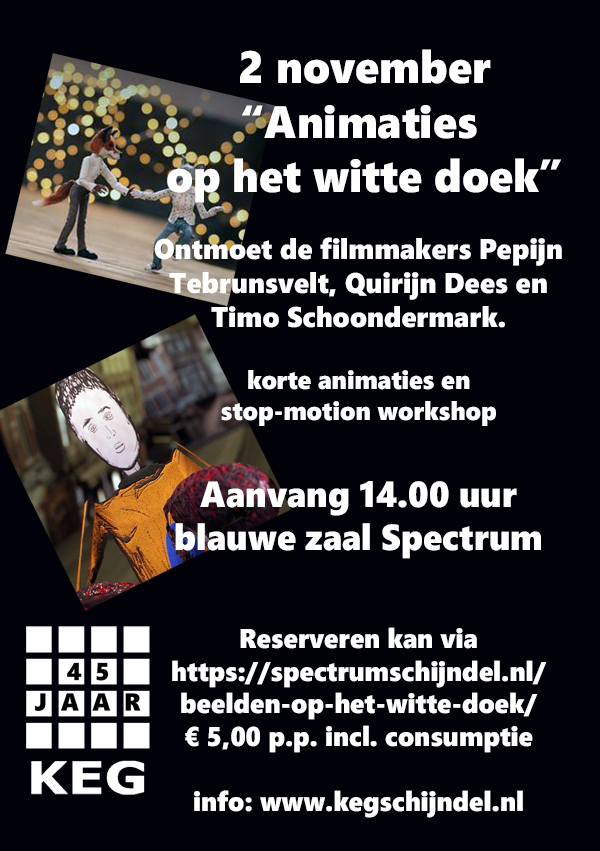 2 nov 14.00 uur     Animatiefilm middag met stopmotion film, 2D en 3D ( blauwe zaal)